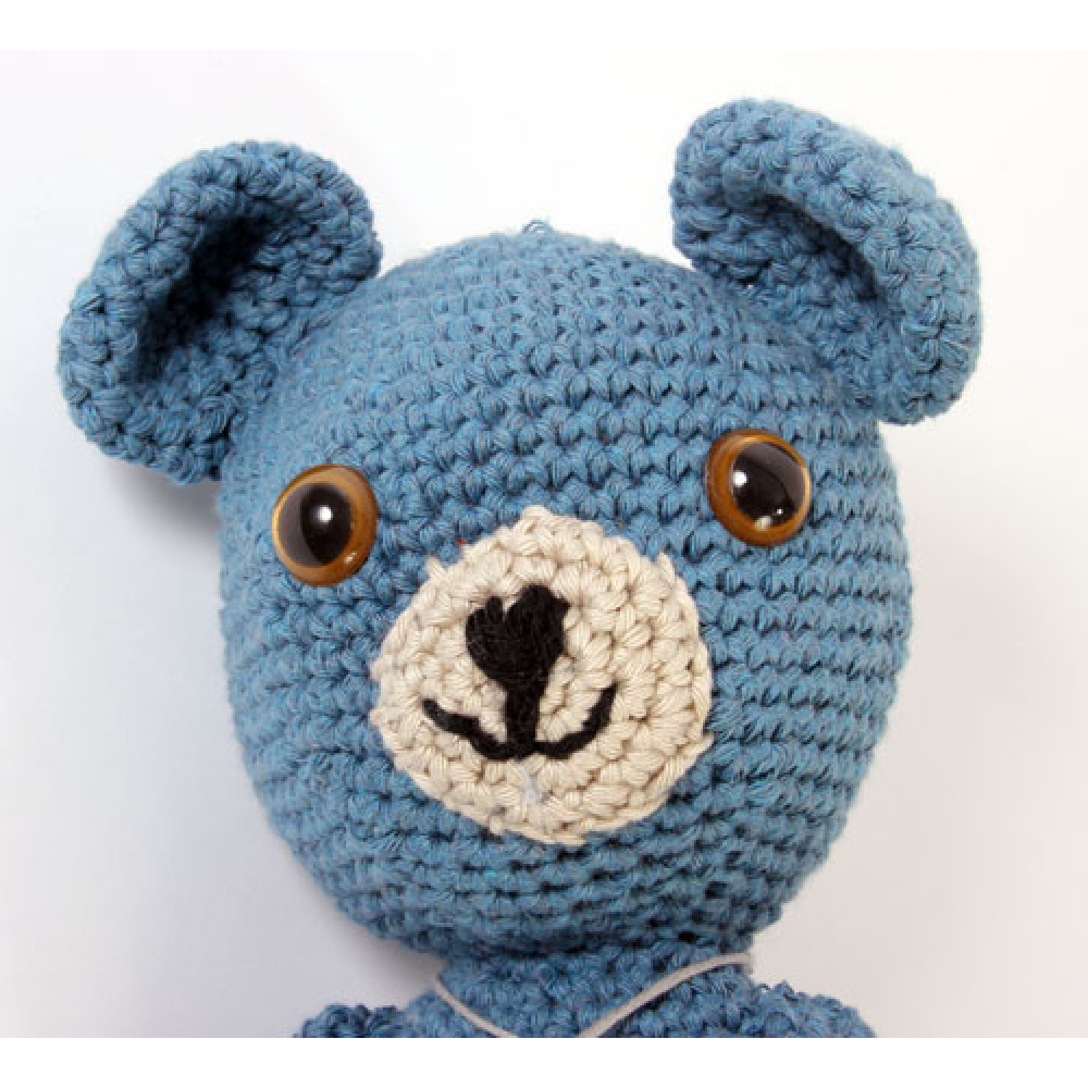Buddy is ca 42cm lang en gehaakt van gerecyclede denim garen, 100% biologische katoen.