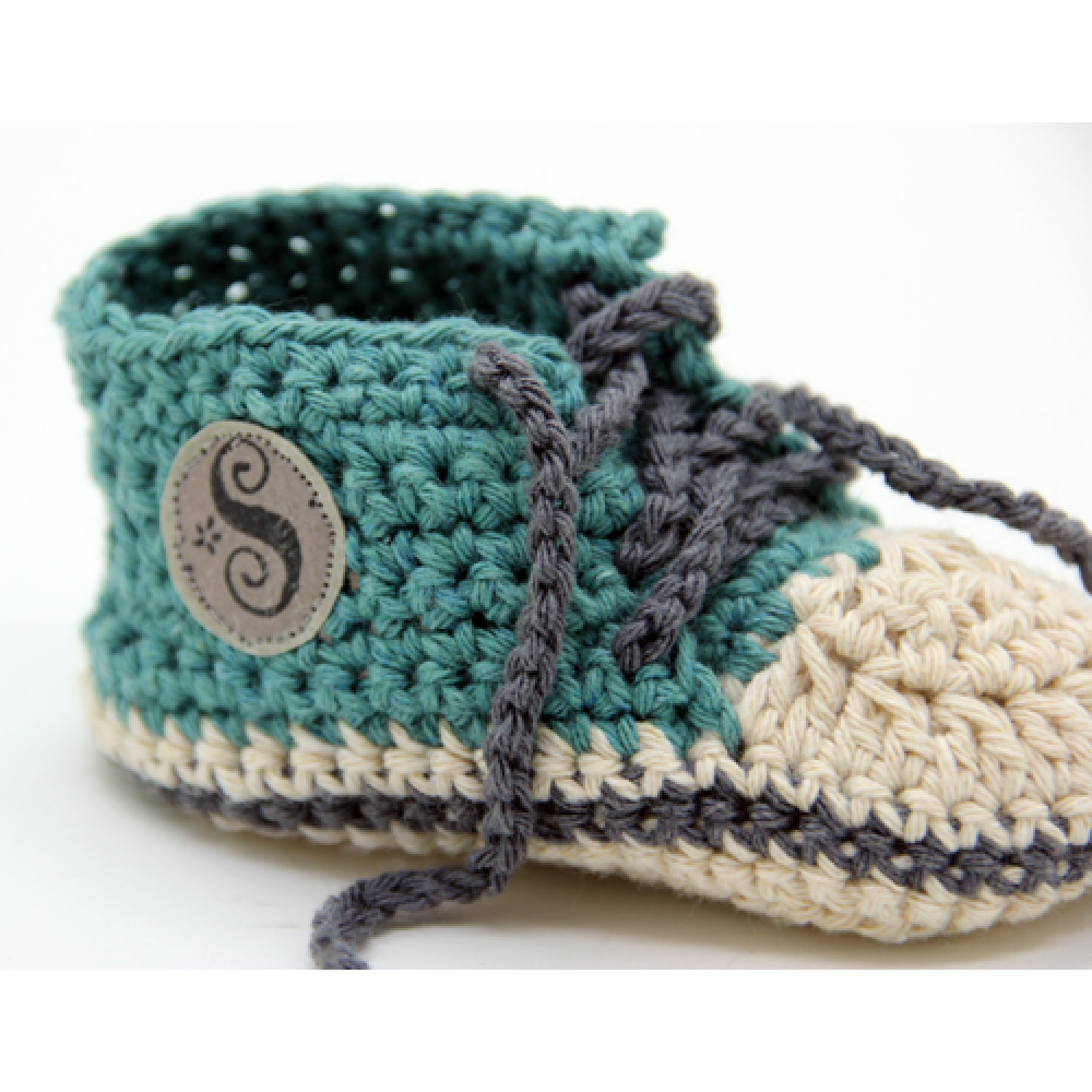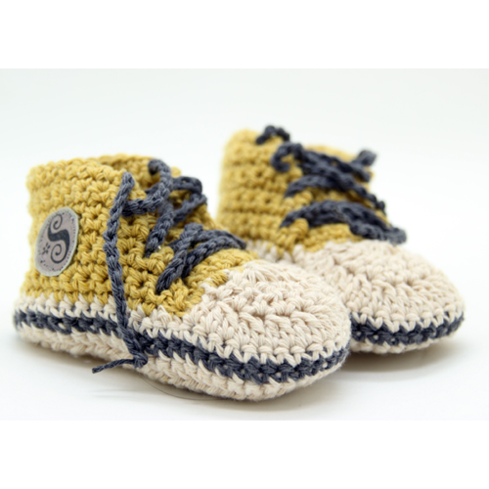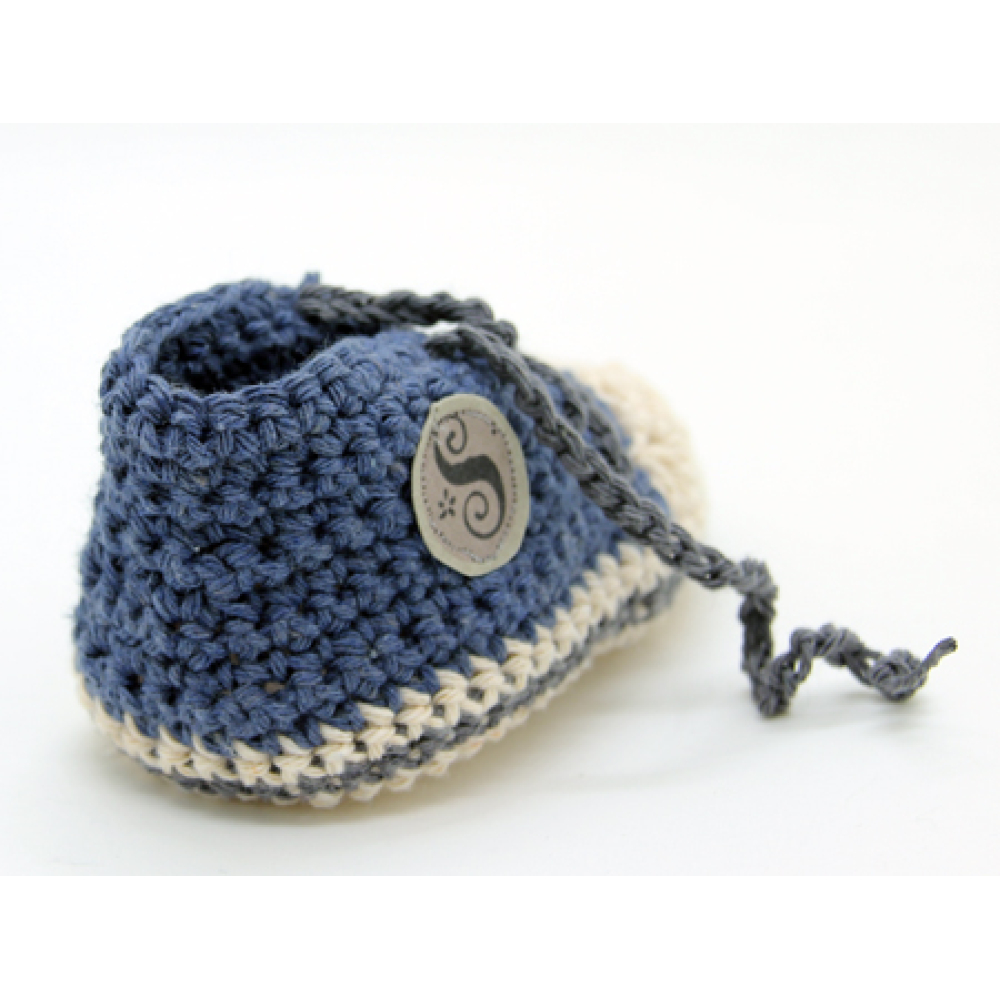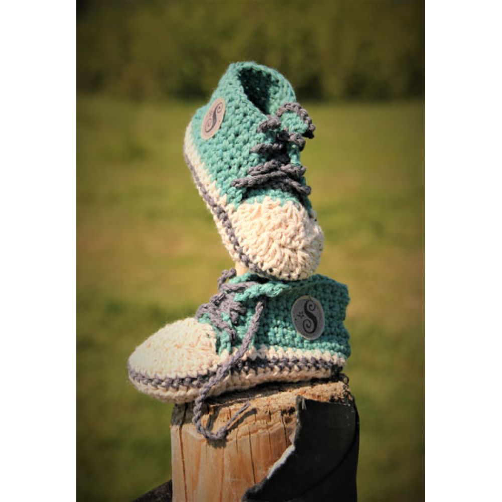 Zo schattig en toch zo stoer, deze babysneakers gehaakt van gerecyclede biologische katoen (oeko-tex gecertificeerd). Het label is van veganistisch leer.