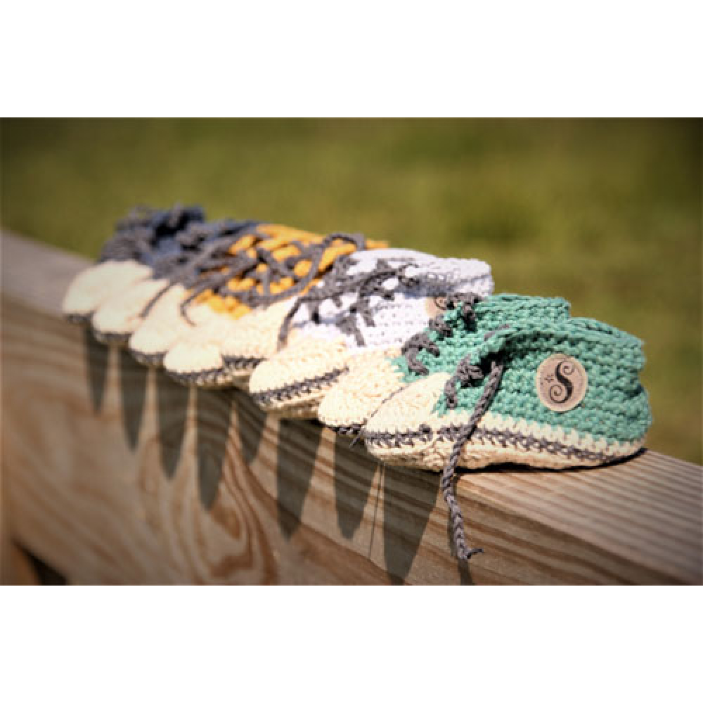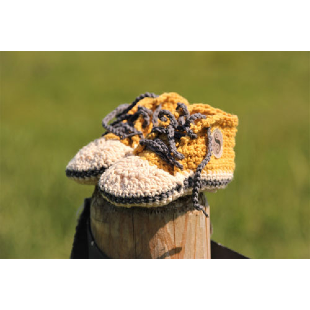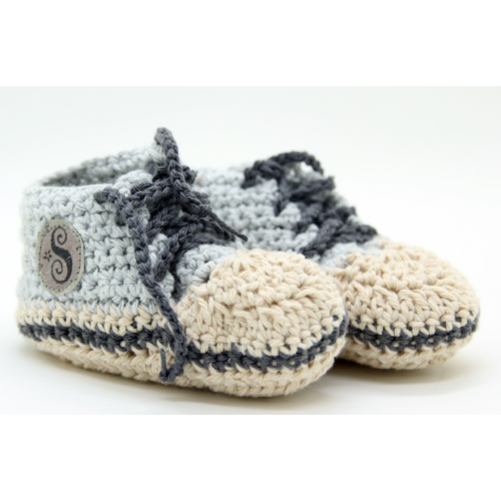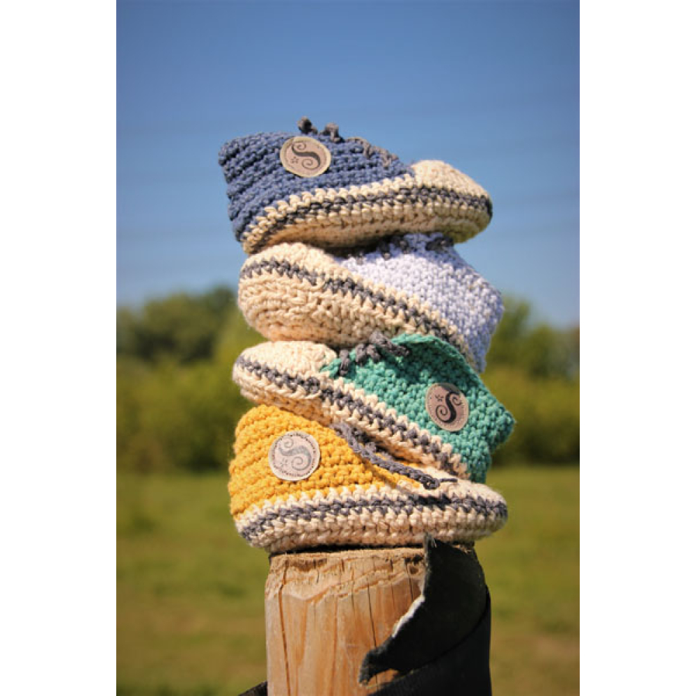 Zo schattig en toch zo stoer, deze babysneakers gehaakt van gerecyclede biologische katoen (oeko-tex gecertificeerd). Het label is van veganistisch leer.