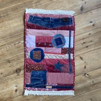 Hij is gewatteerd en heeft een antislip onderkant. Hij is afgewerkt met katoenen franje.