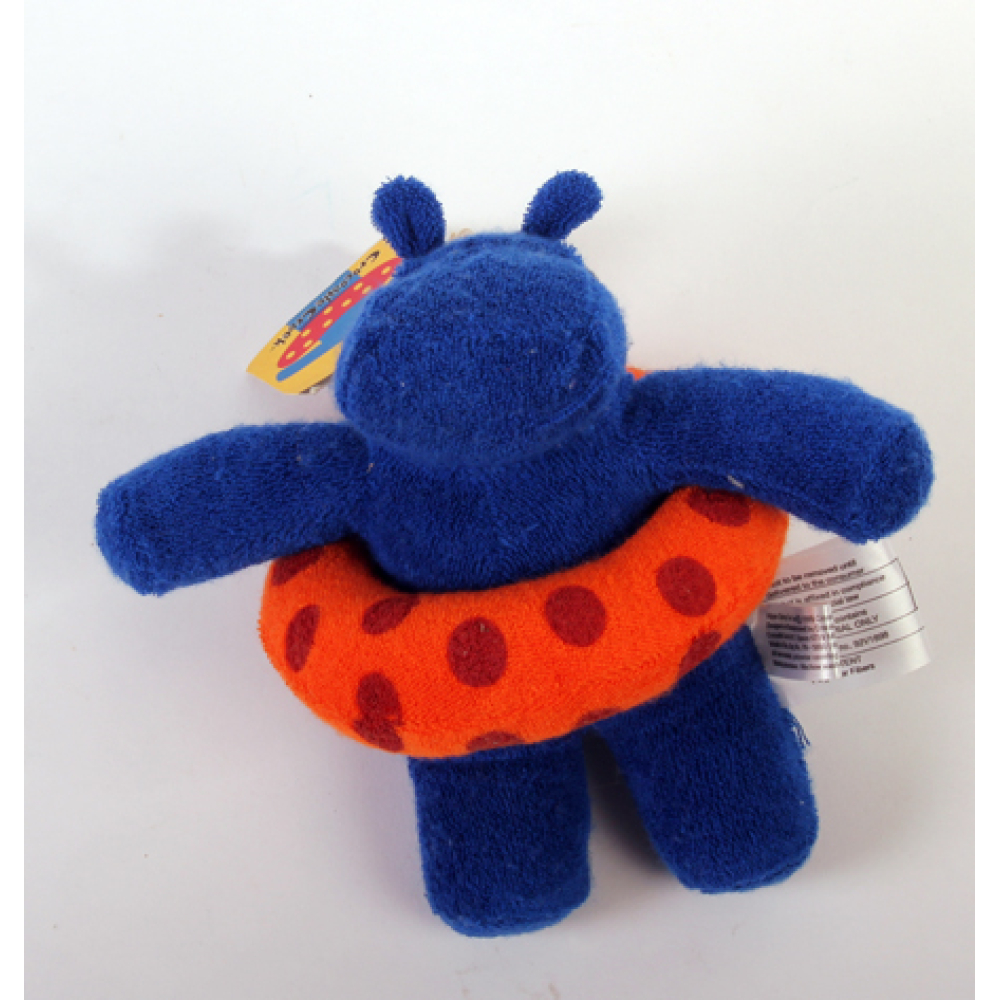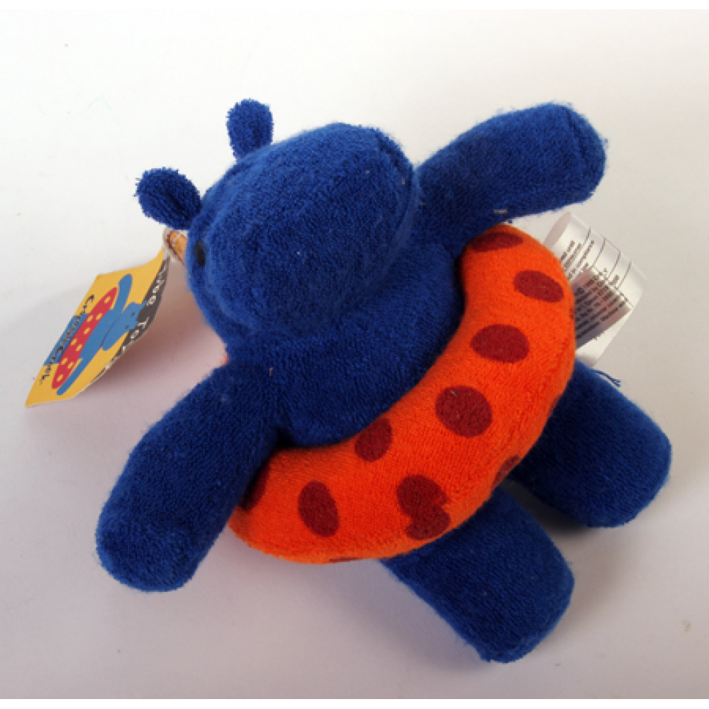Badstof badspeeltje blauwe nijlpaard met oranje zwemband