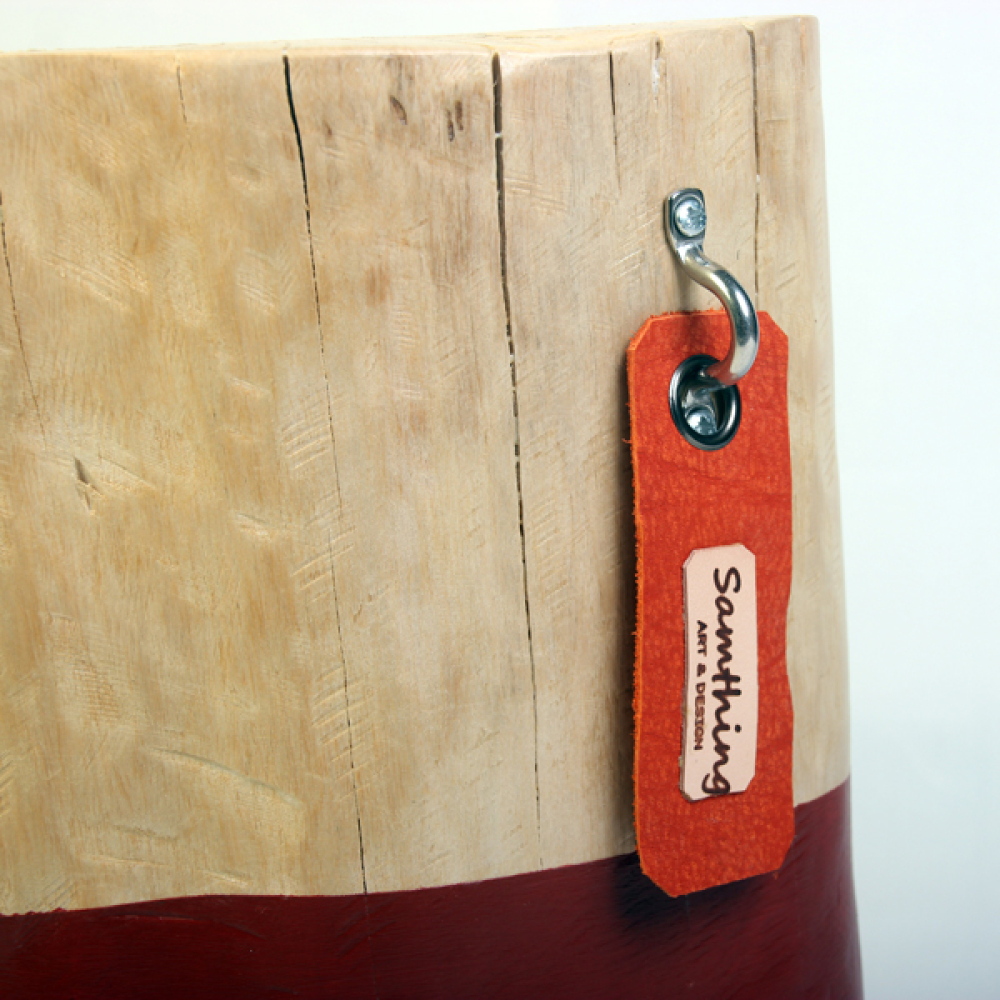 Voorzien van metalen oog met lederen label.