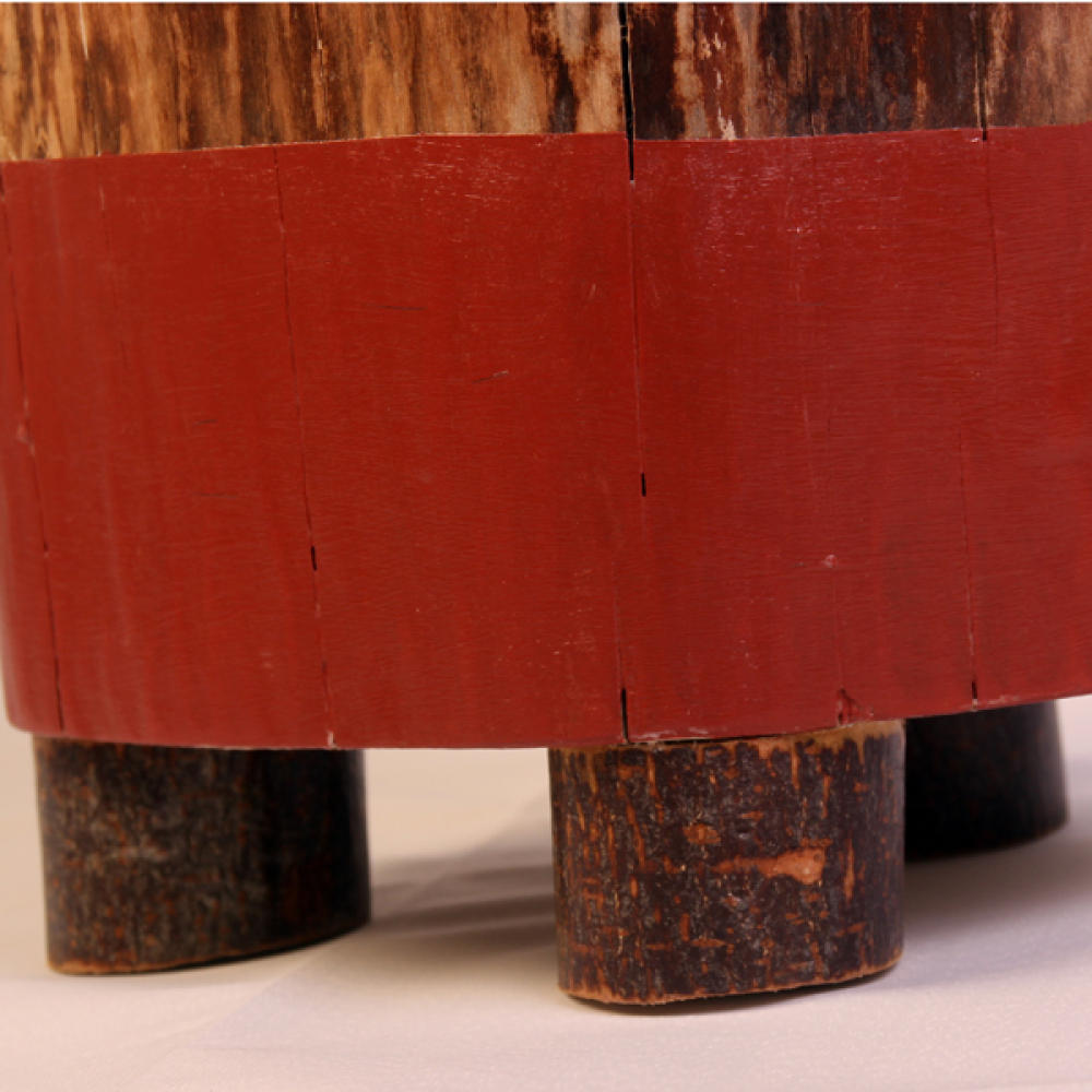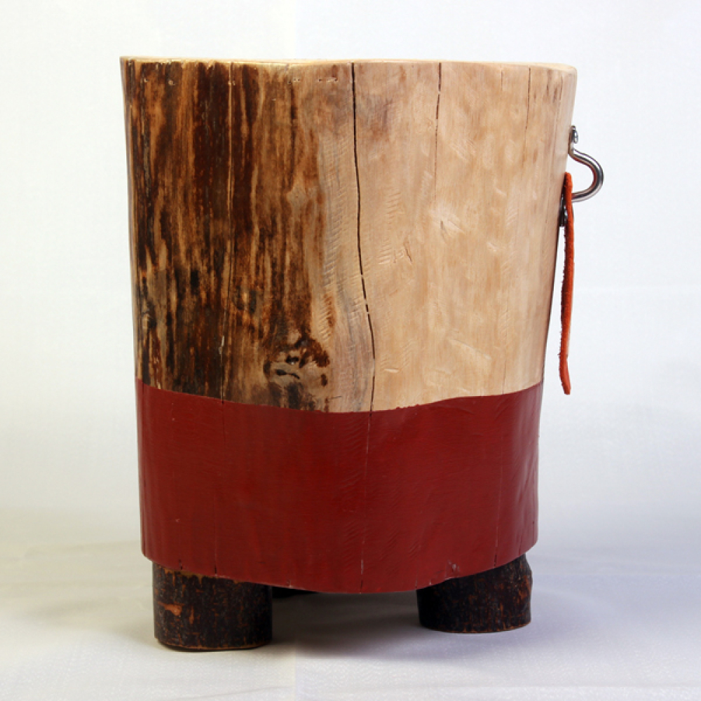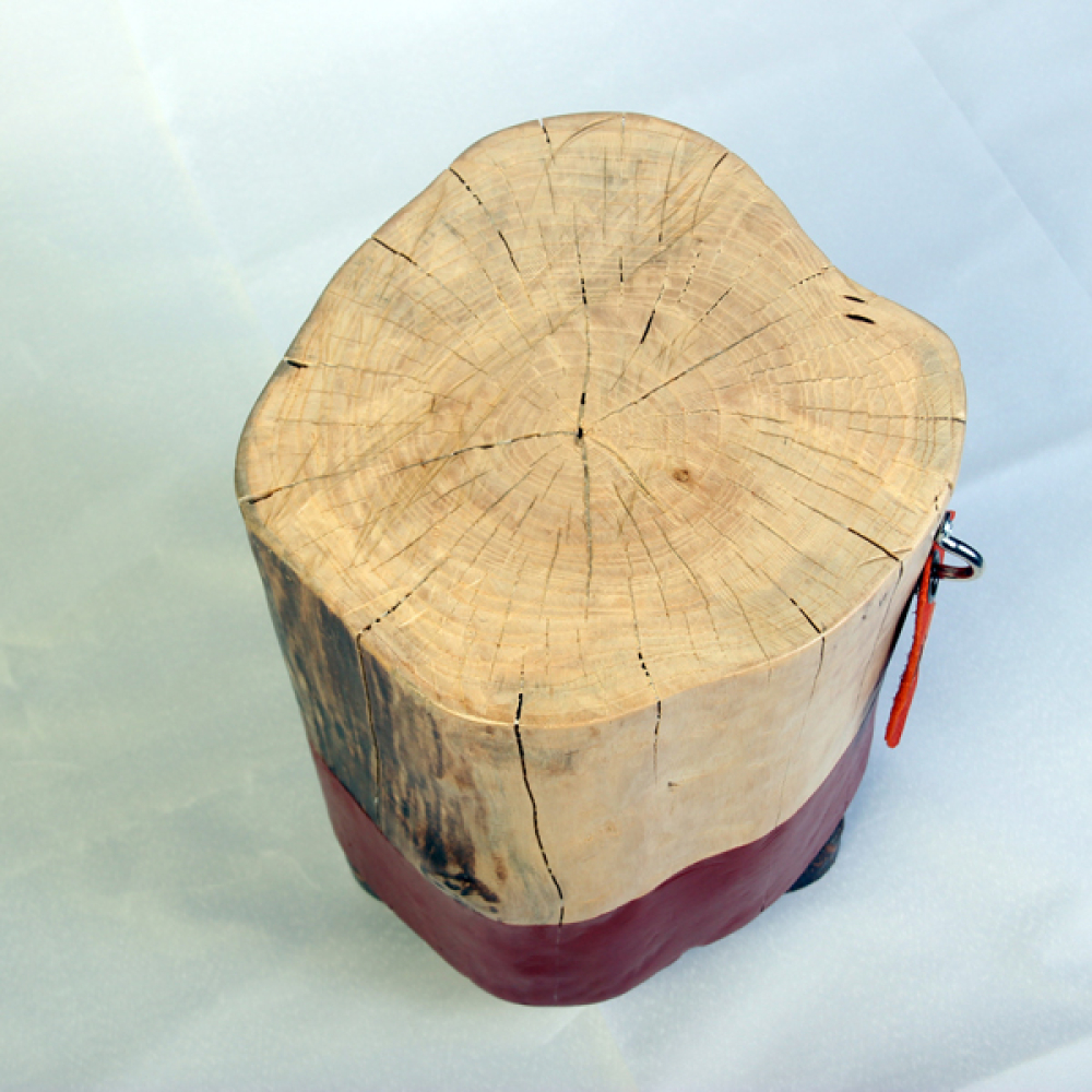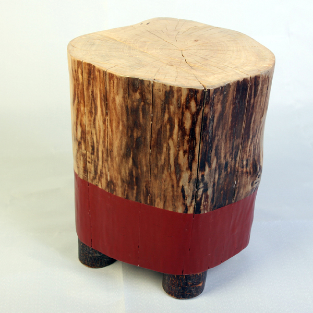 Staande boomstam op 3 houten poten.
