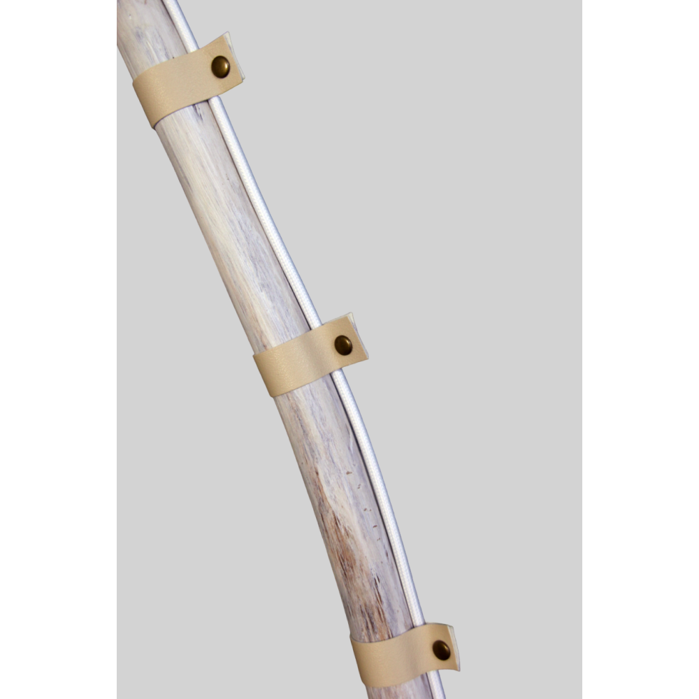 Het witte strijkijzersnoer is aan de tak vastgemaakt met stukjes skaileer en sierspijkers.