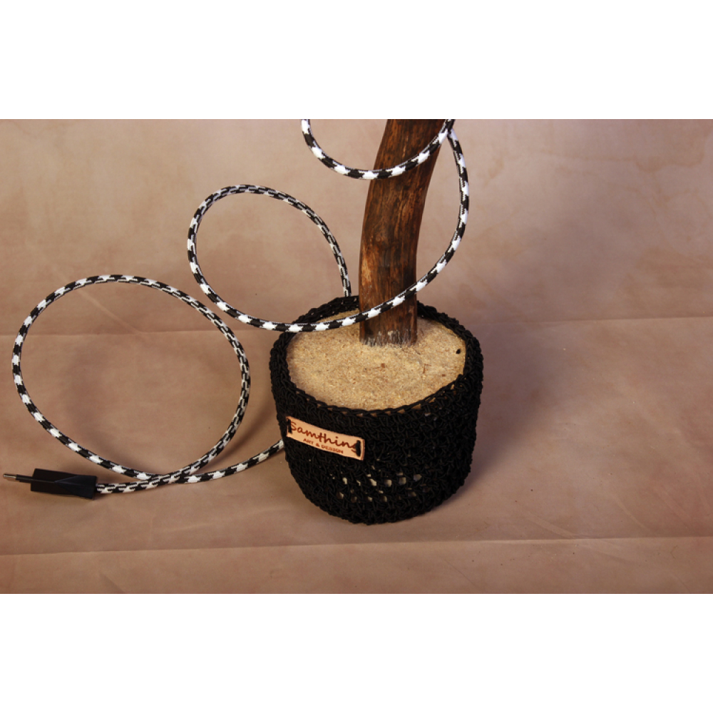 Stam in betonnen pot met gehaakt omhulsel.