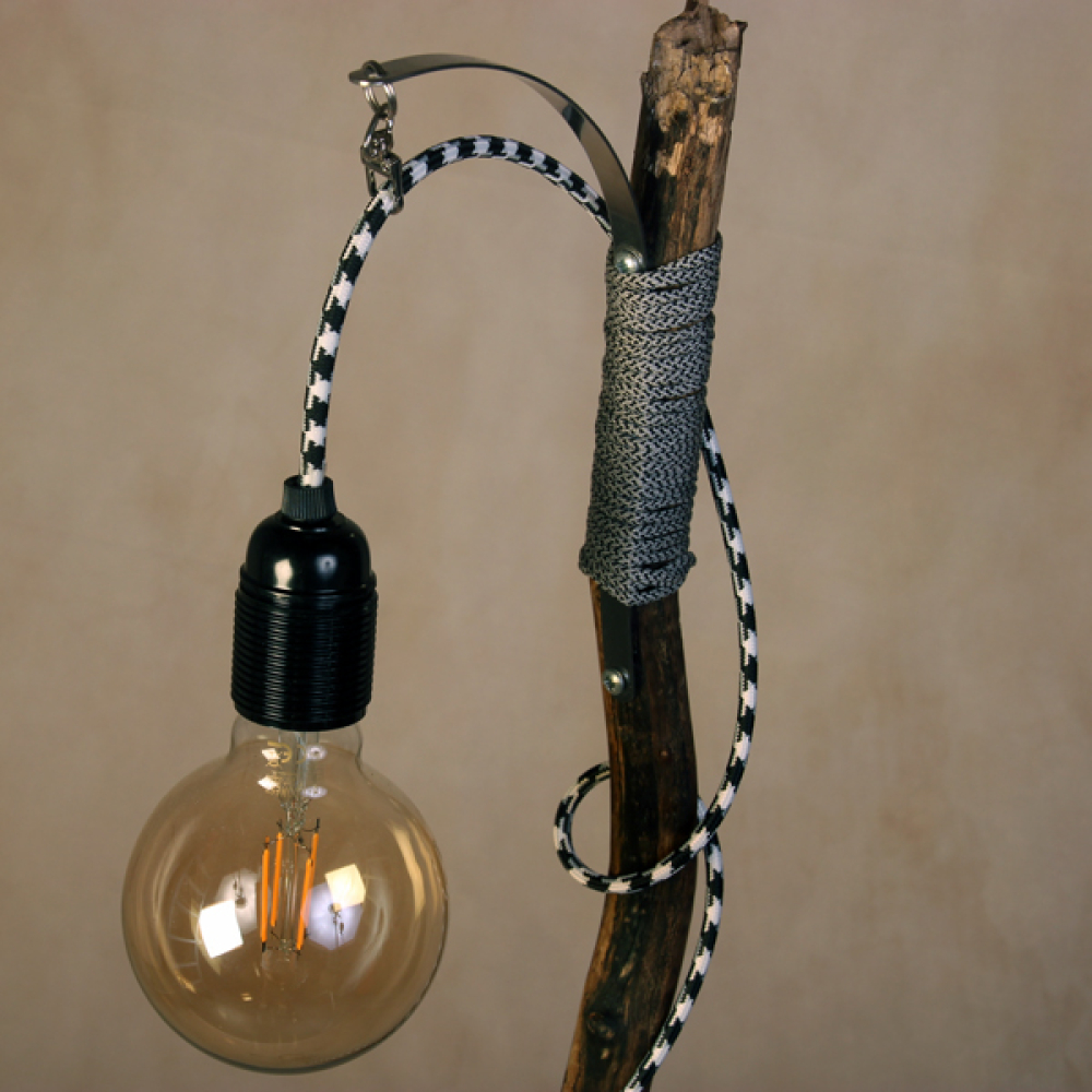 Met zwart-wit elektrasnoer en bakeliet fitting.