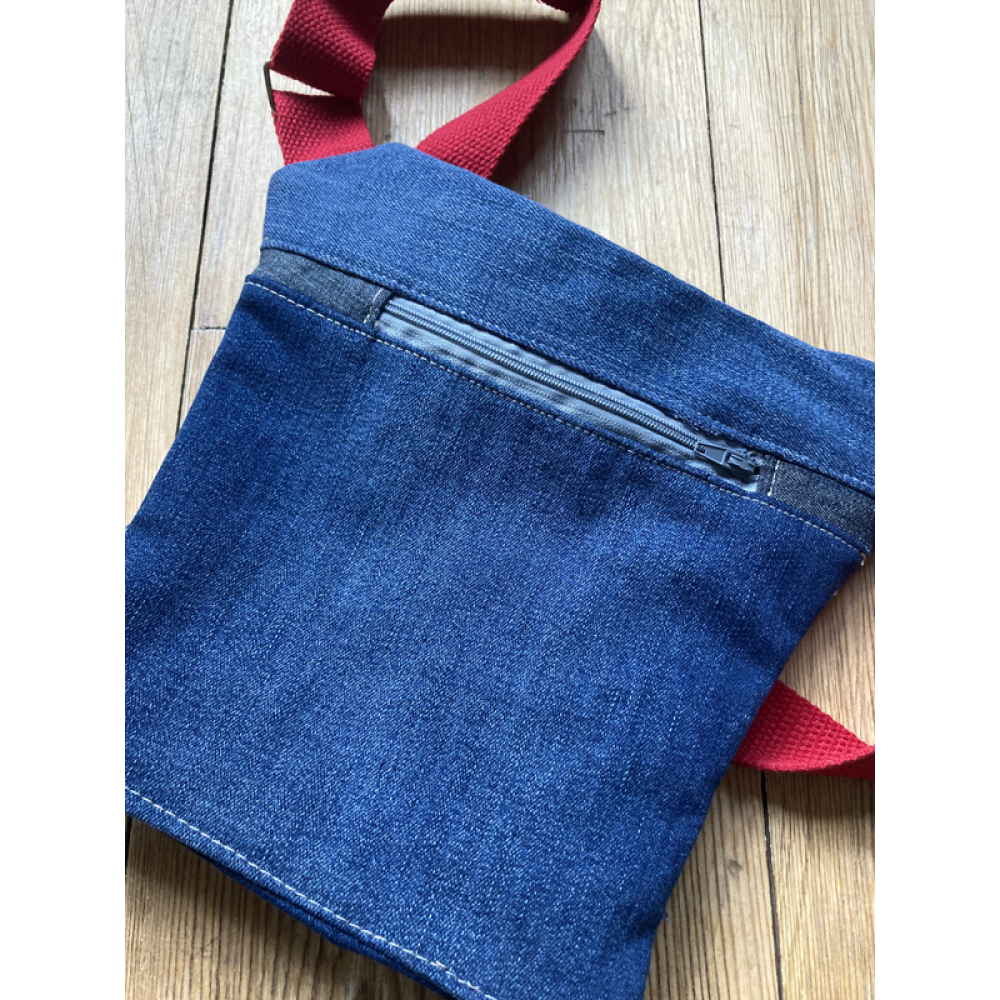 Fannypack, te gebruiken als heuptasje of schoudertasje, gemaakt van gebruikt denim i.c.m katoen.