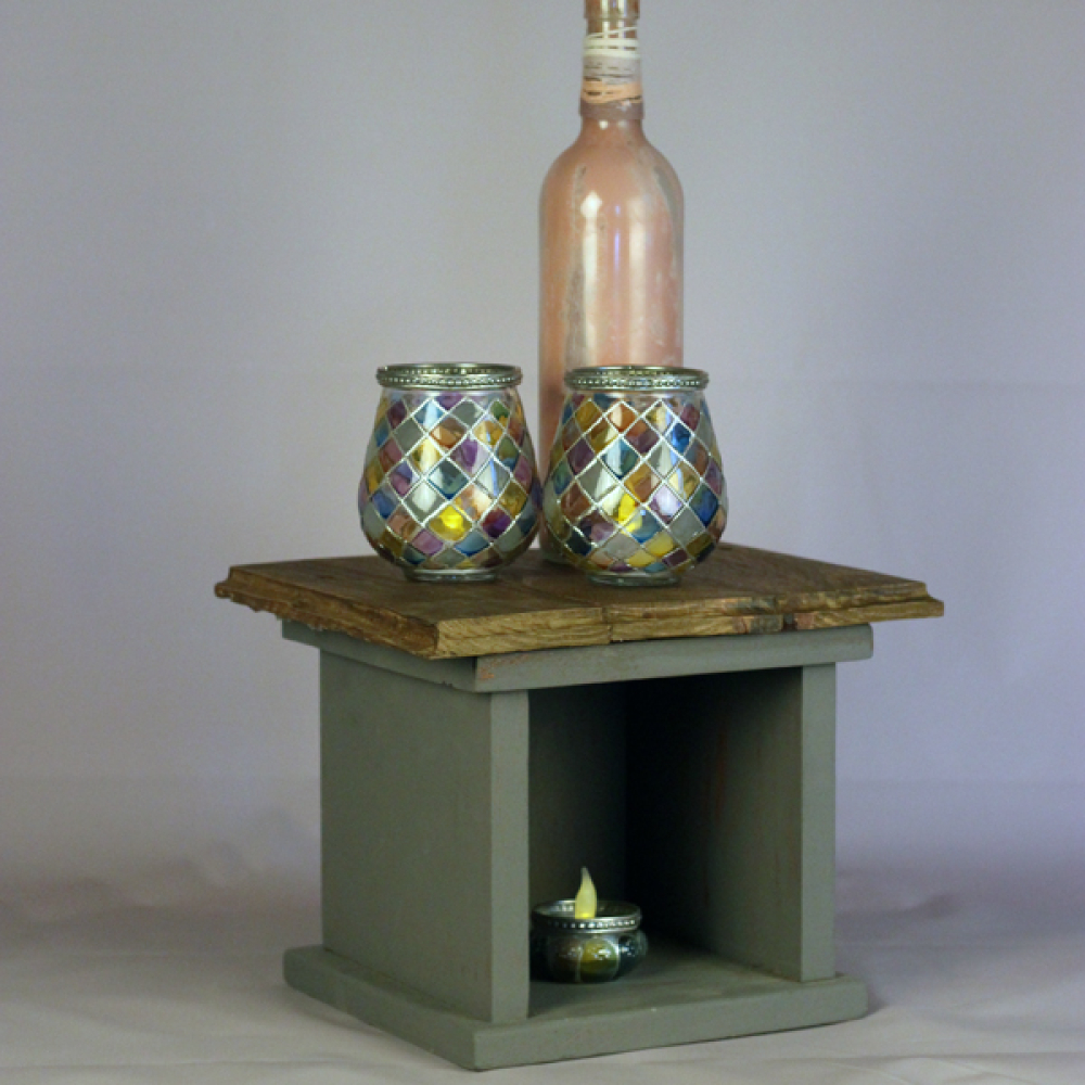 Aan de bovenkant is een blad gemaakt van sloophout.