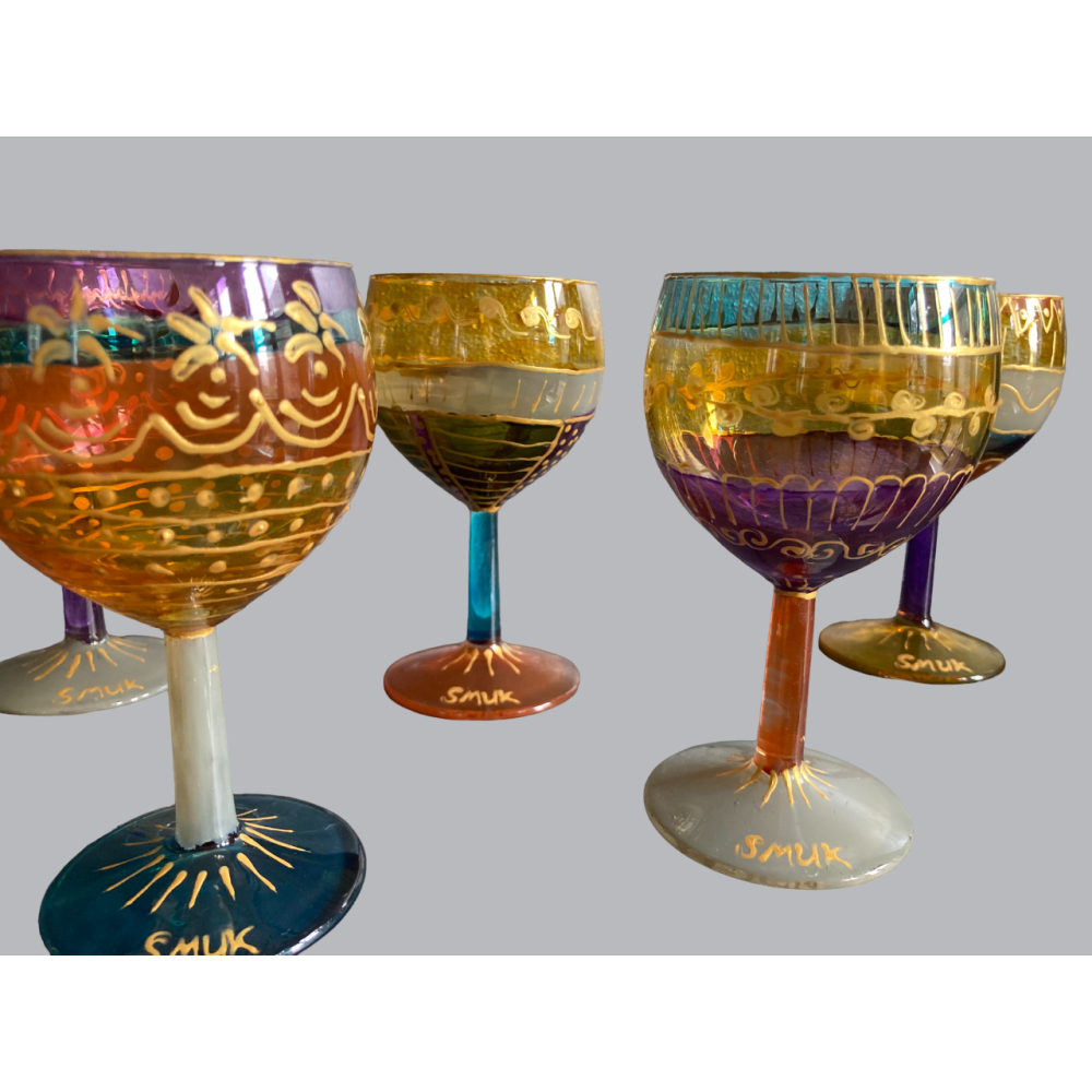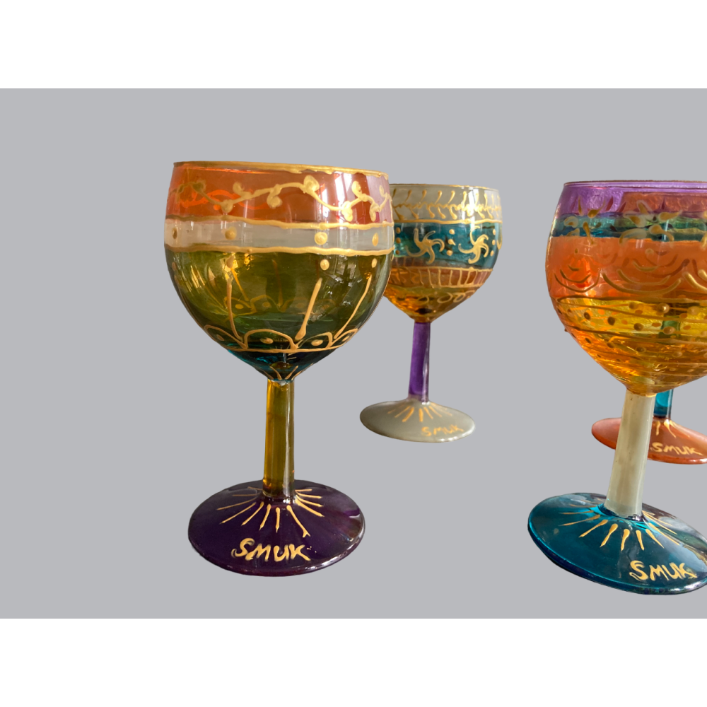 Deze wijnglaasjes zijn met de hand beschilderd.