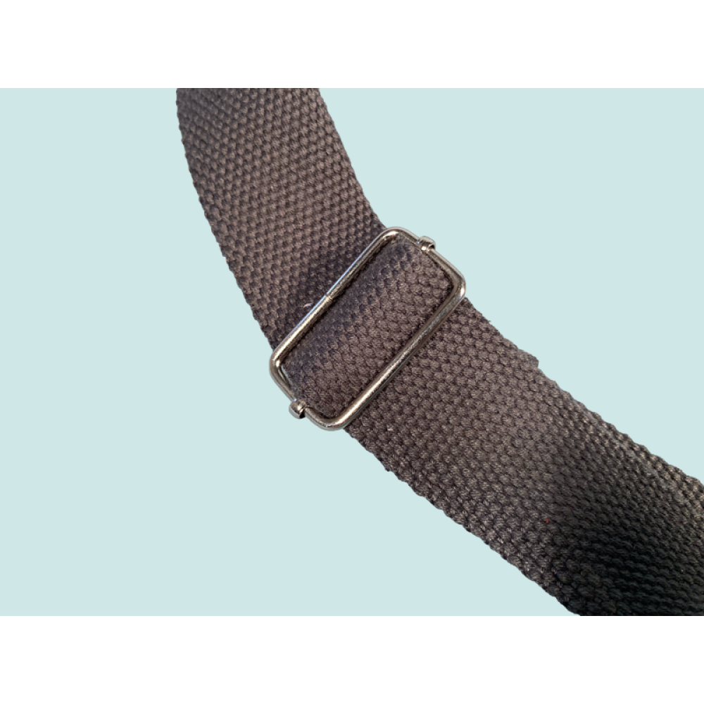 De canvas band is verstelbaar en afneembaar dmv metalen haken.
