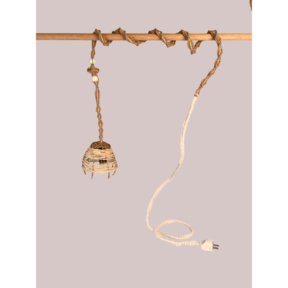 De hanglamp is mobiel door de stekker aan het uiteinde van het touw.