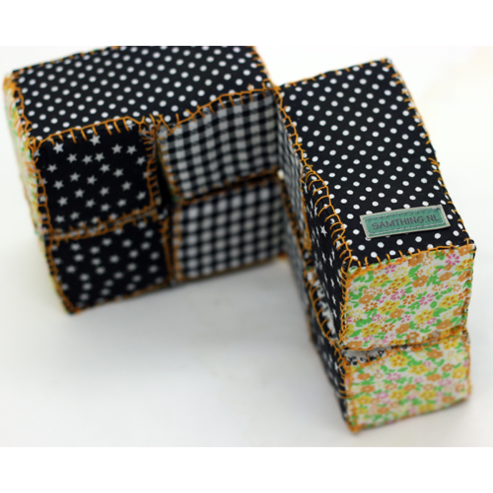 De afmeting van de afzonderlijke blokjes is 4x4cm. De kubus bestaat uit 8 blokjes.