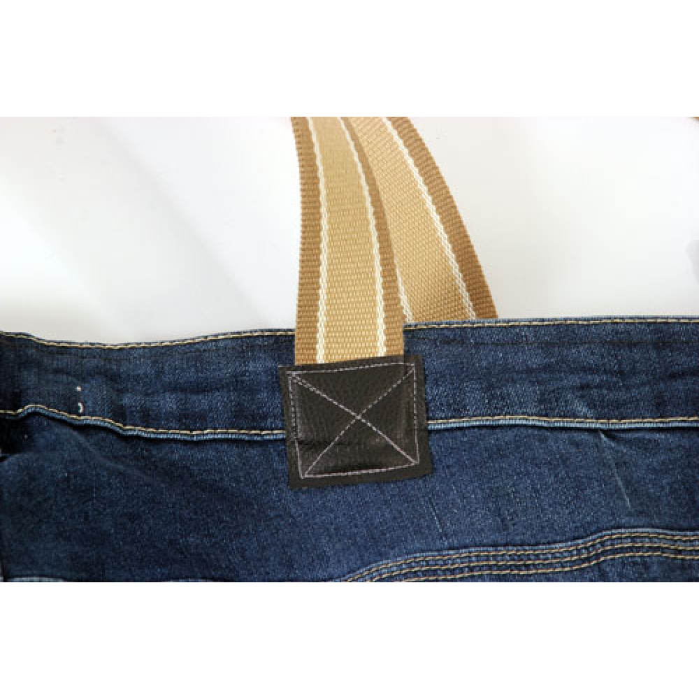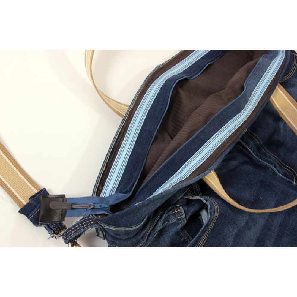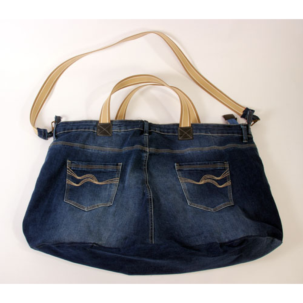 Grote reistas gemaakt van hergebruikte jeansbroeken