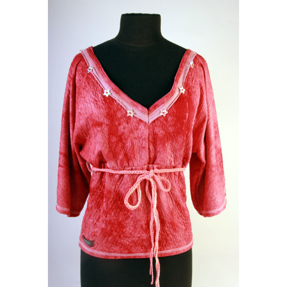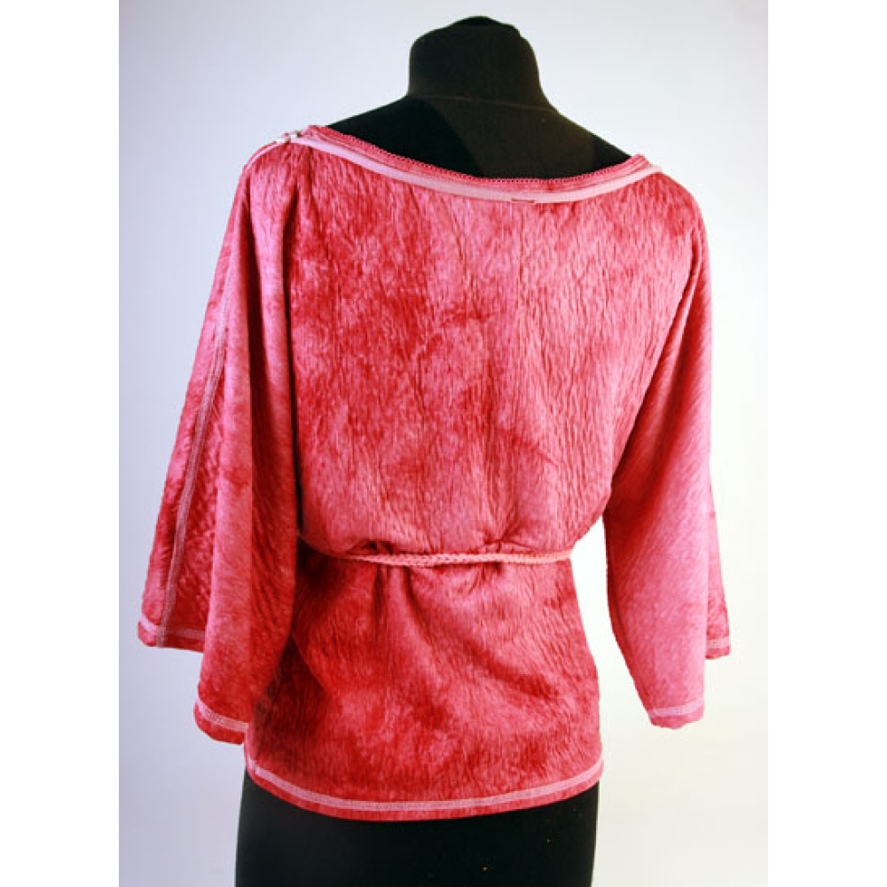 Shirt met kimono-model, lage hals en wijde mouwen.