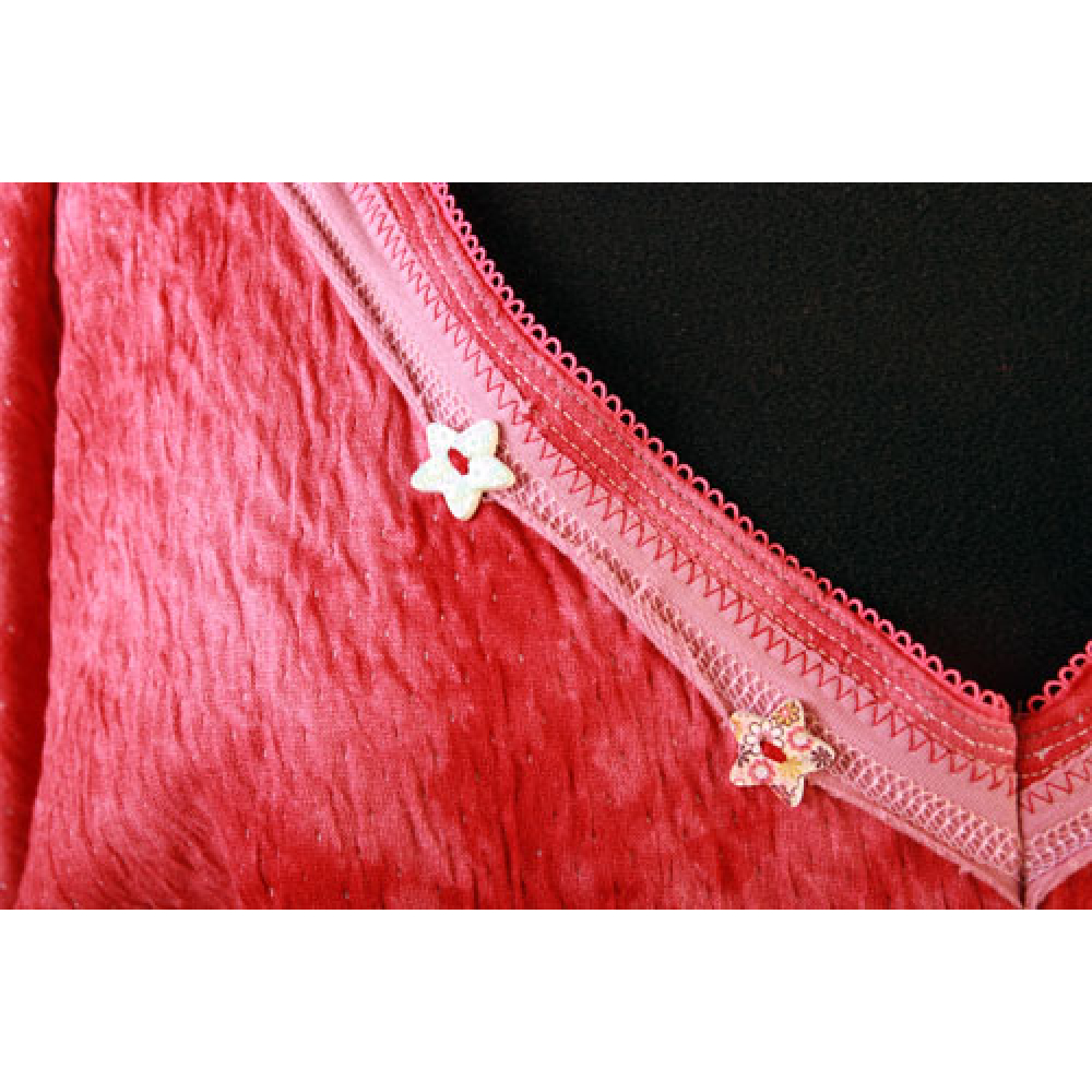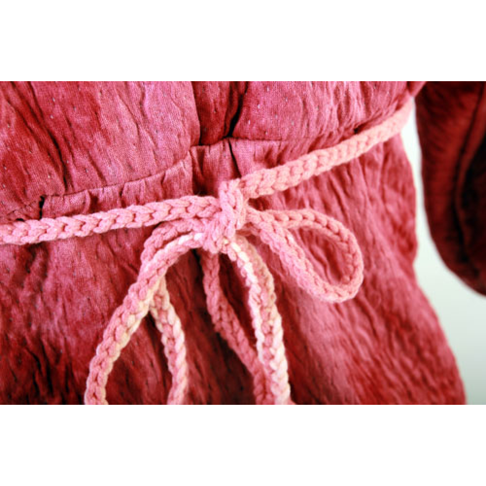 met bloemknoopjes langs de hals en gehaakte ceintuur