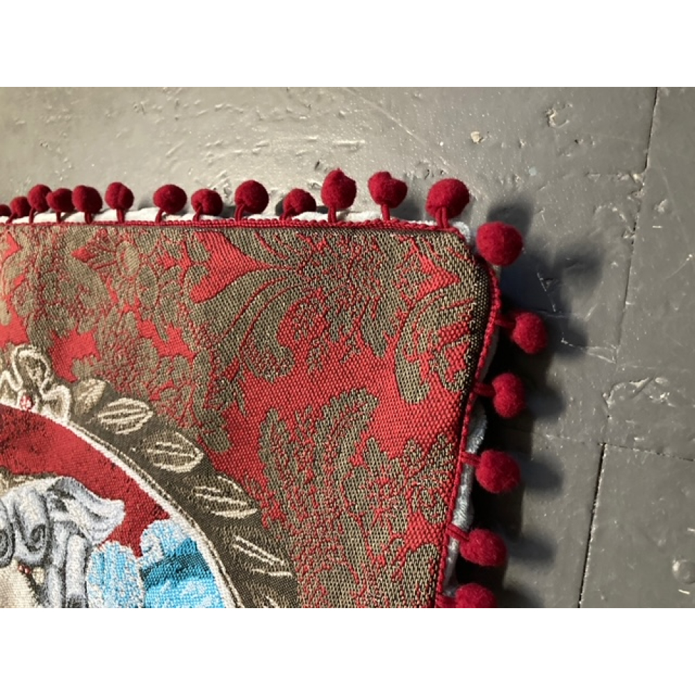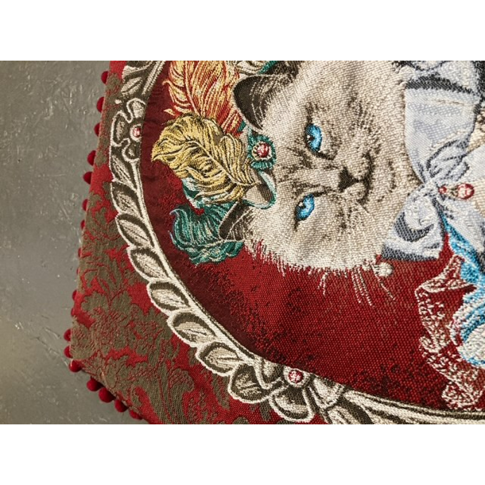 Kussen van gobelin stof met ingeweven afbeelding van een kat.
