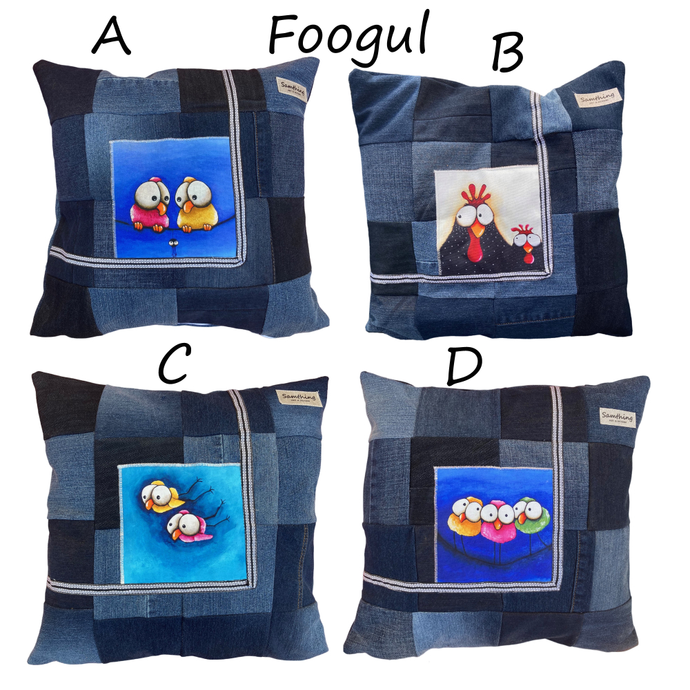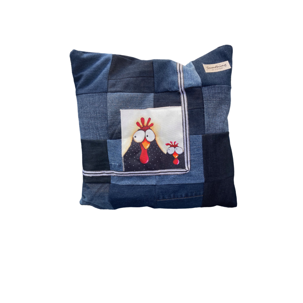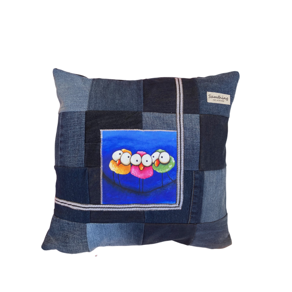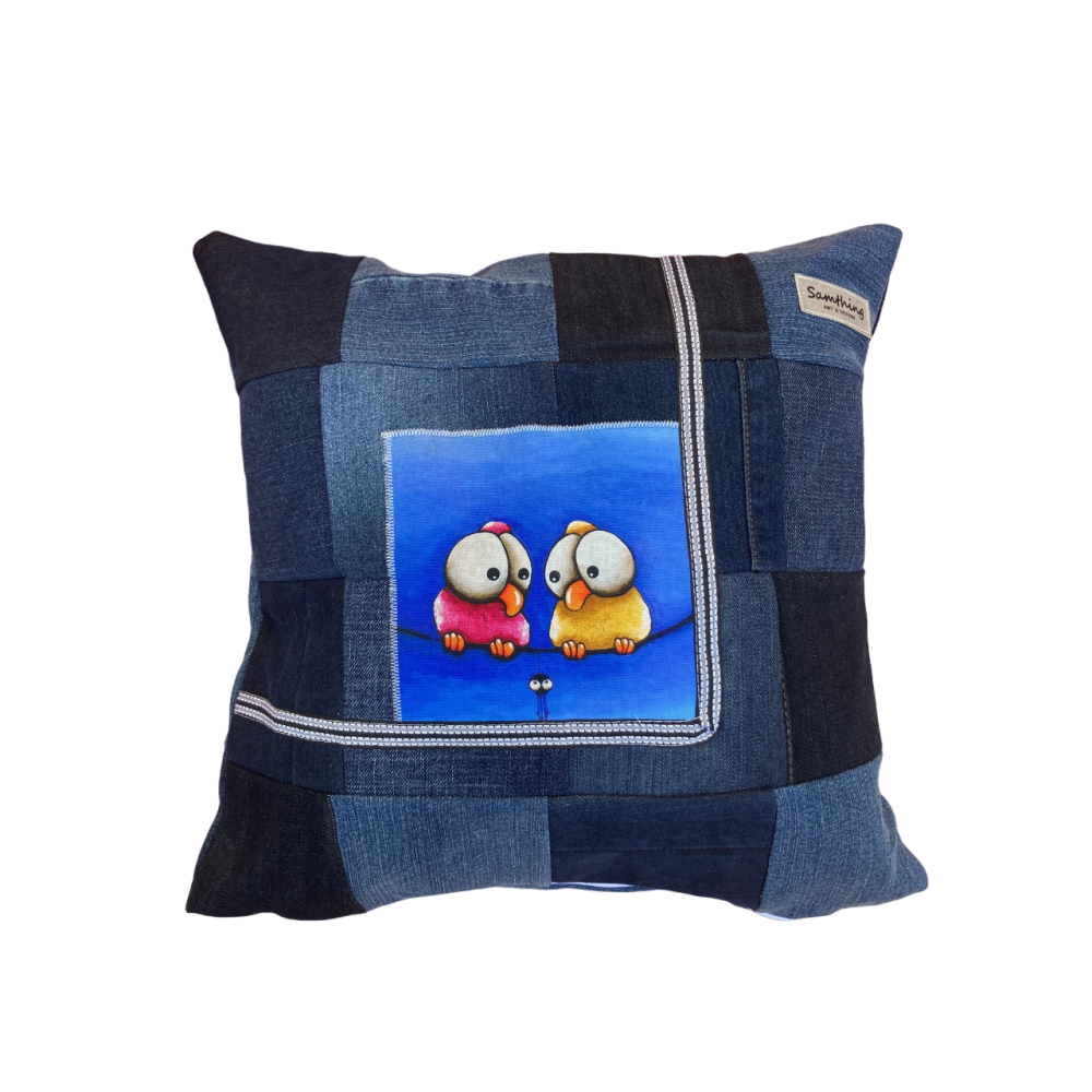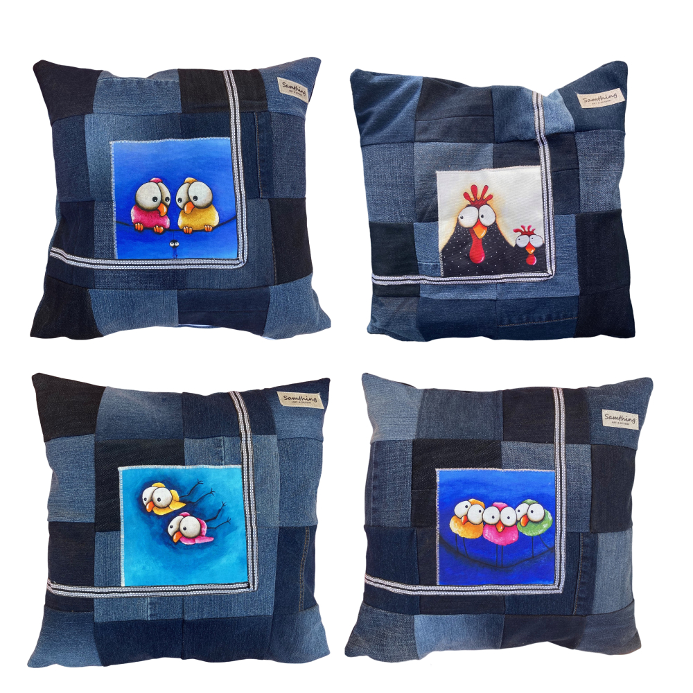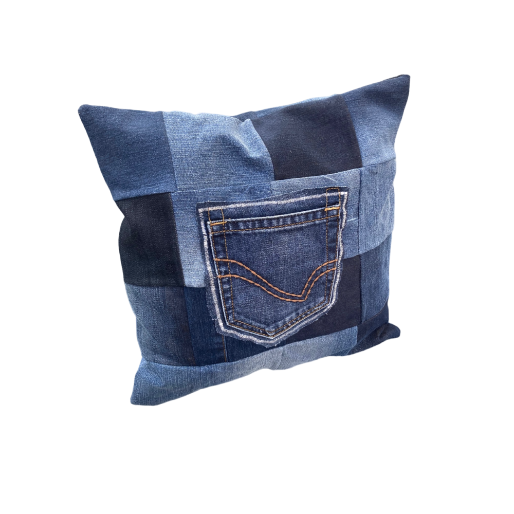 Dit stoere kussen is er in 4 varianten en is gemaakt van oude jeans.