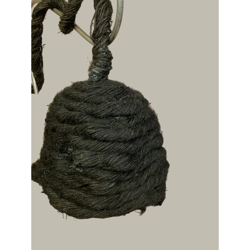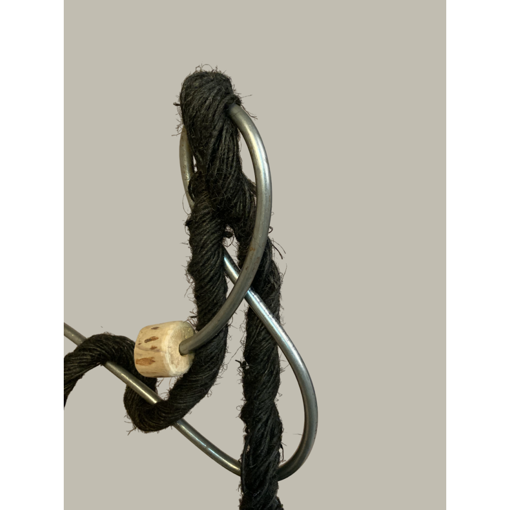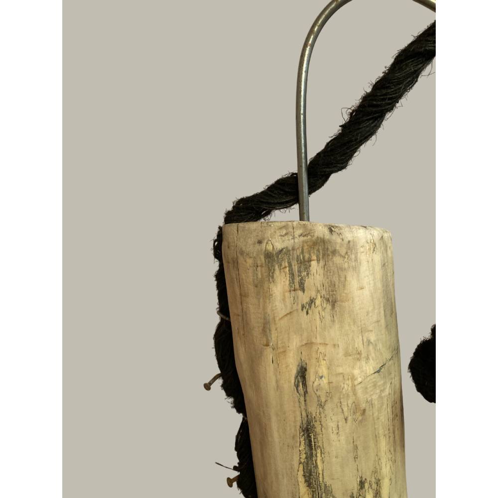 Het touw wordt aan de achterkant vastgehouden door oude spijkers.