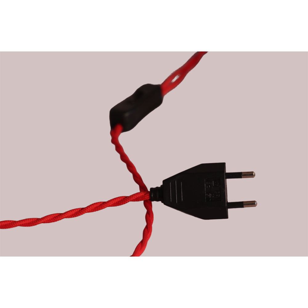 De lamp heeft een rood gedraaid snoer met schakelaar.