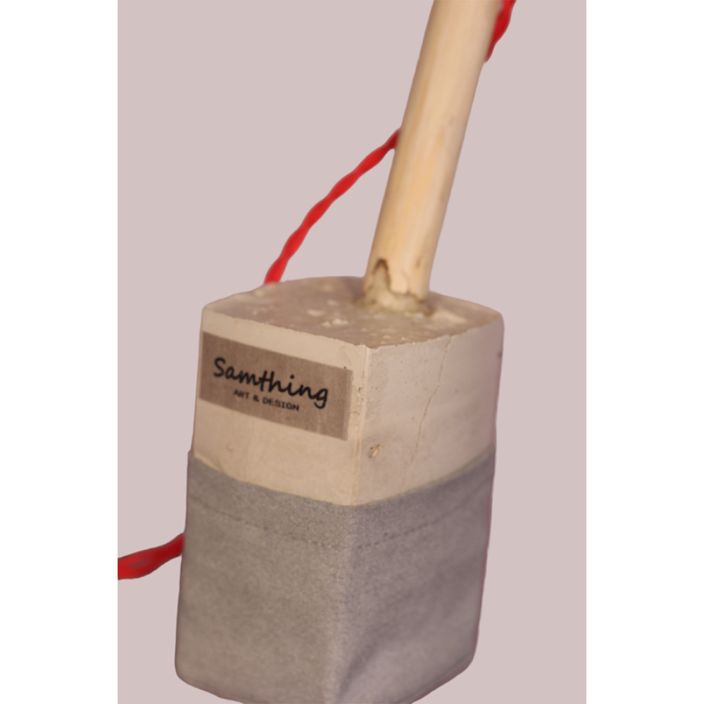 Lamp bestaande uit een tak gegoten in beton met katoenen omhulsel.