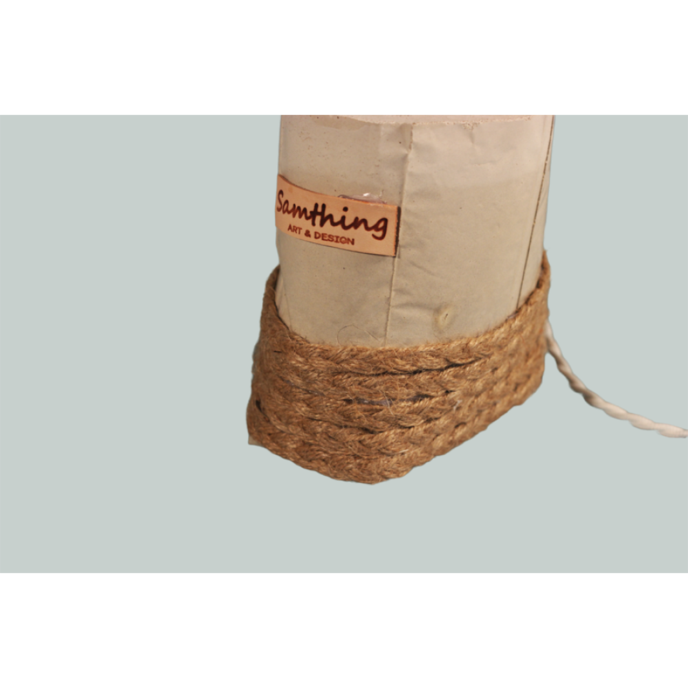 Schattig lampje bestaande uit een tak gegoten in beton met touw.