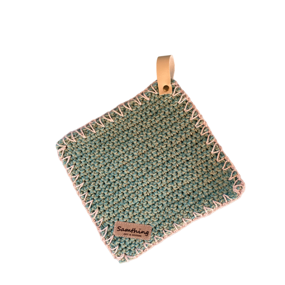 Afgewerkt met skaileer en klinknagel en festonsteek