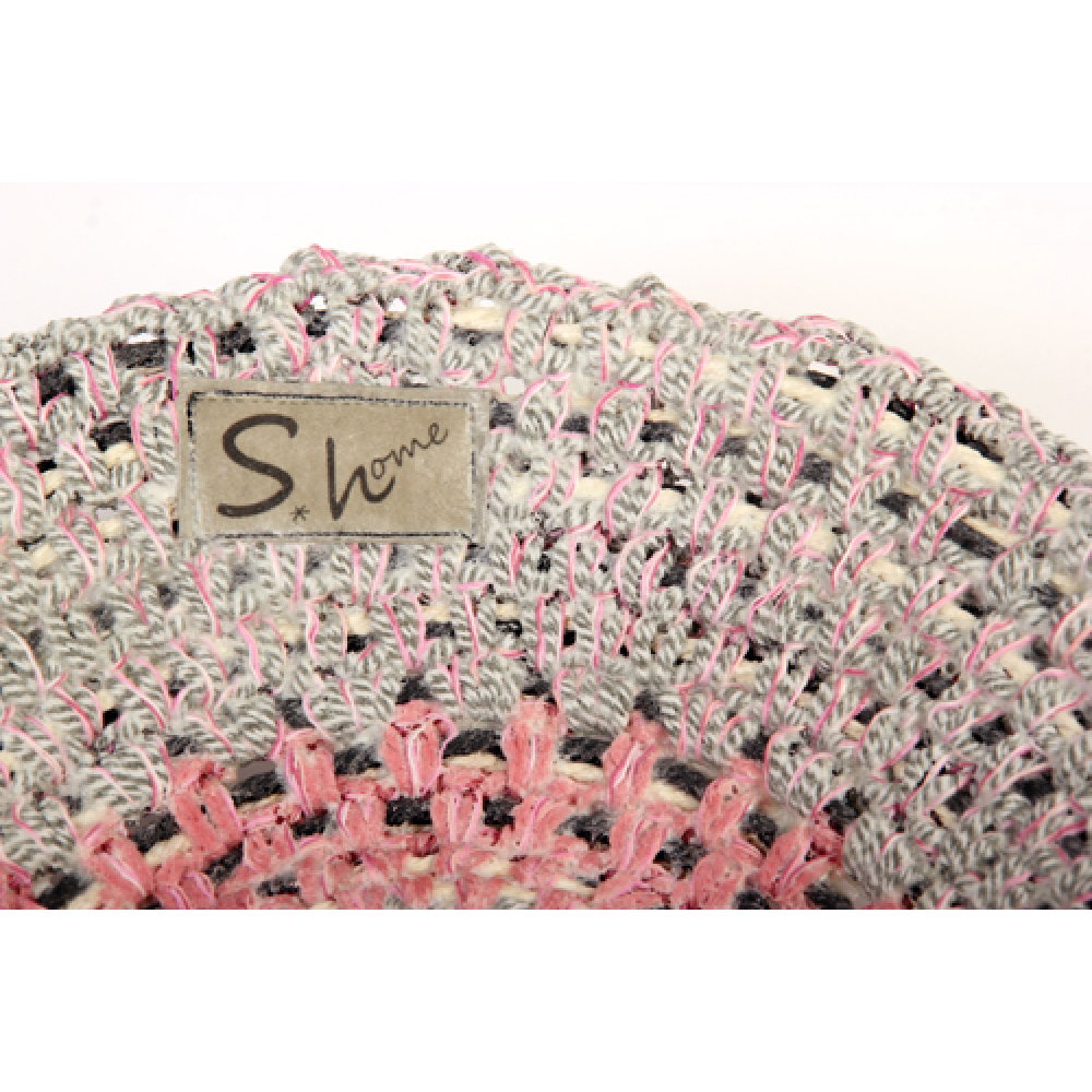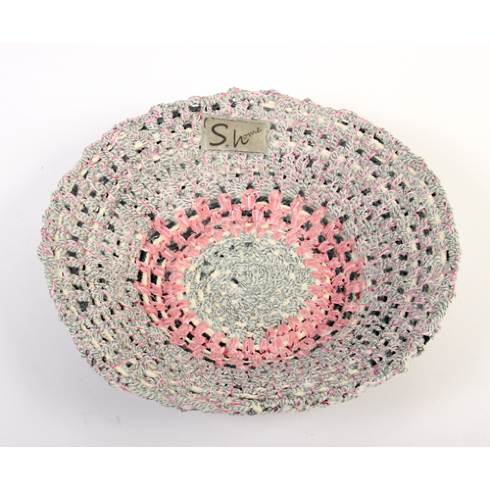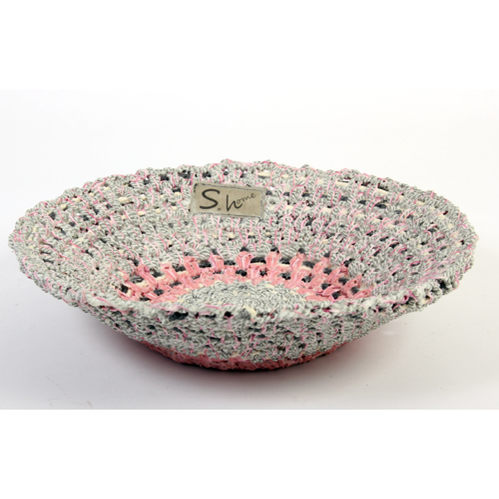 Hij is gemaakt van gehaakte en geweven garen en daarna gehard.