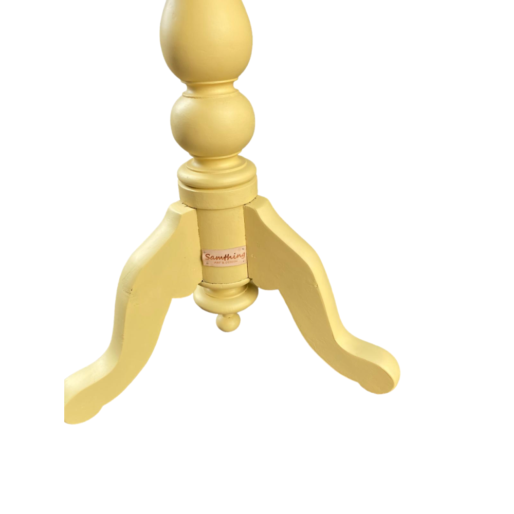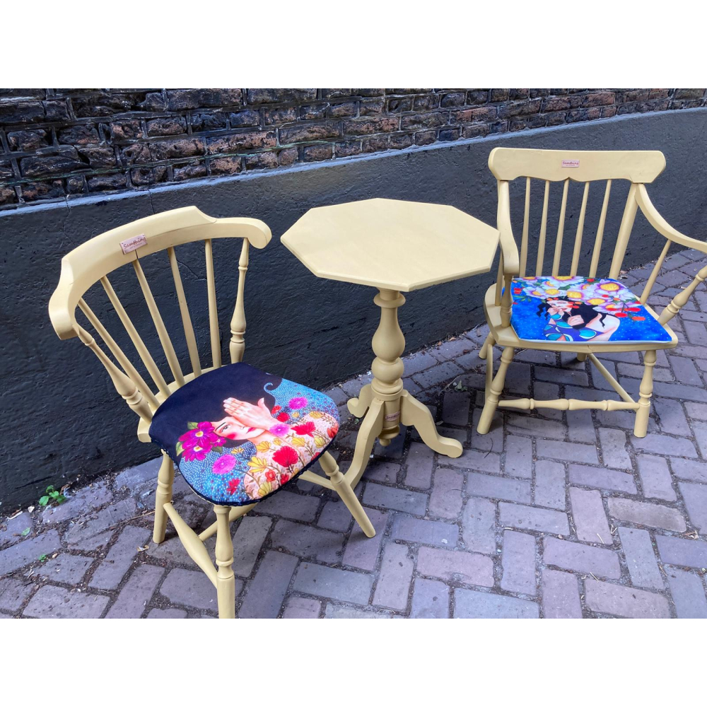 Deze vintage set bestaat uit 2 houten stoelen en een houten tafel en is geüpcycled en geverfd in de kleur maïsgeel van Fusion Mineral Paint.