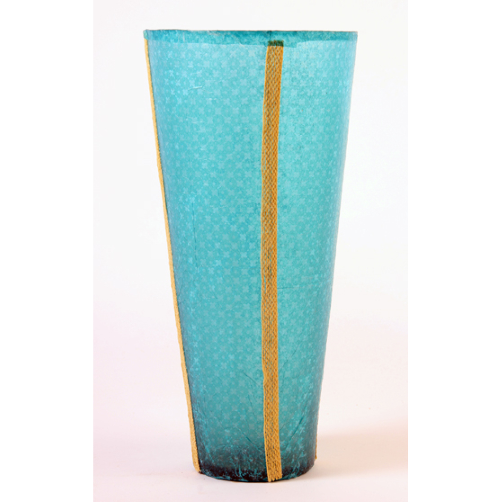 Glazen vaas gedecoreerd met decoupagetechniek en jute bandje