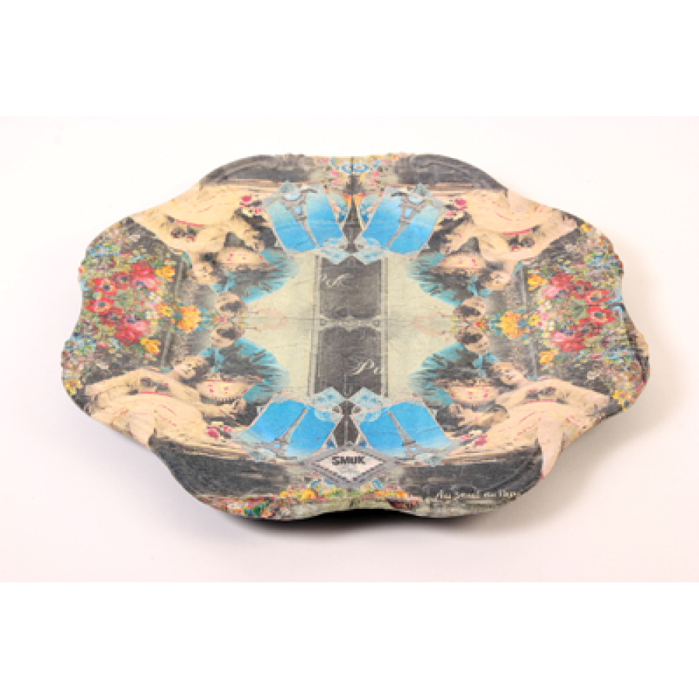 Kunststof schaal gedecoreerd met decoupagetechniek met print van Parijs koppel