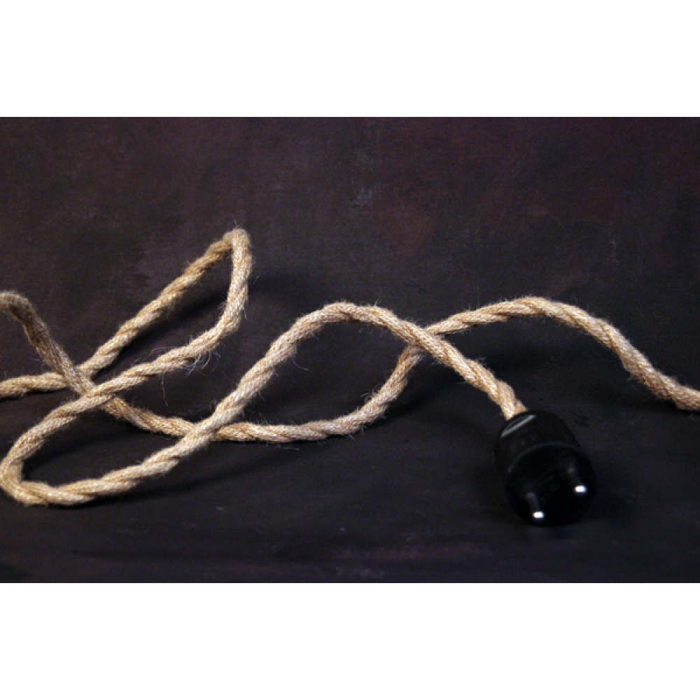 De tak is omwikkeld met dik henneptouw, heeft een sier bakeliet fitting E27.