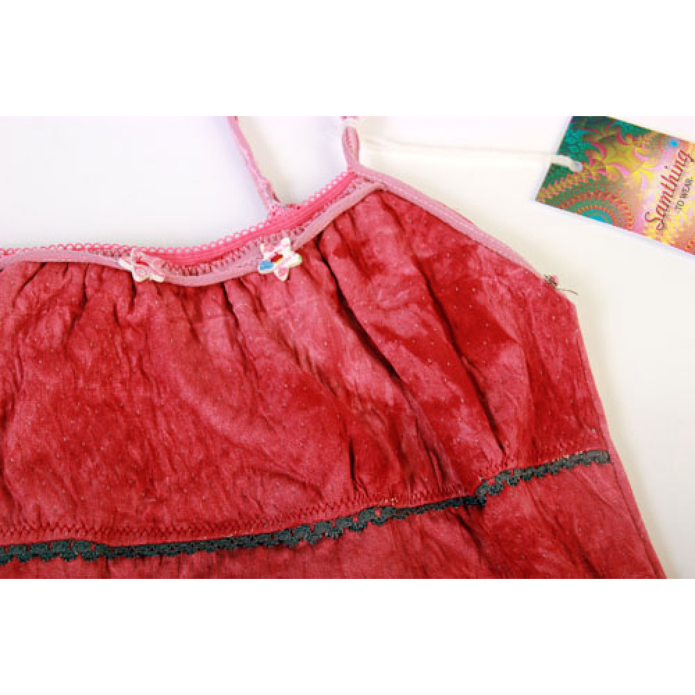 Topje met bloemknoopjes en sierstiksels en spaghettibandjes