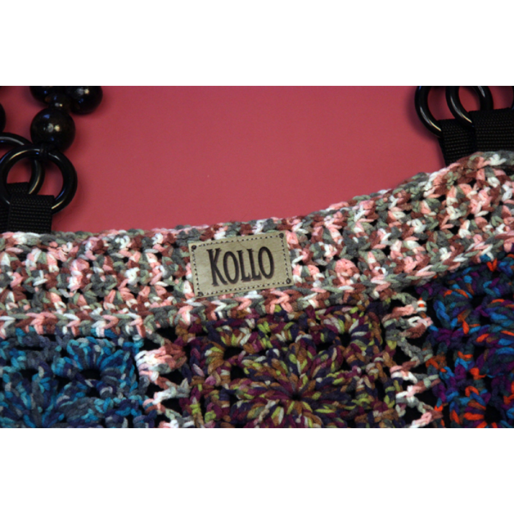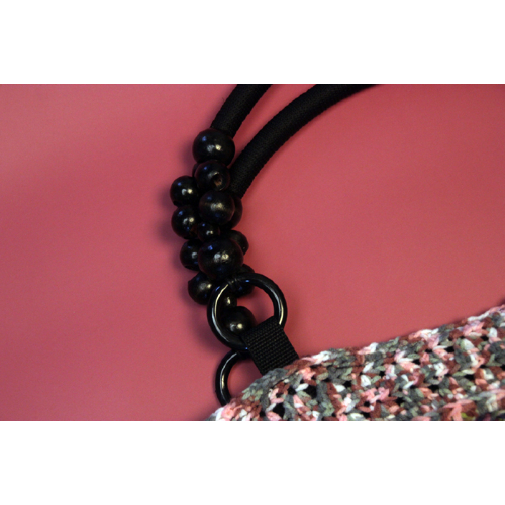 Hij heeft 2 zwarte handvatten met grote houten kralen.