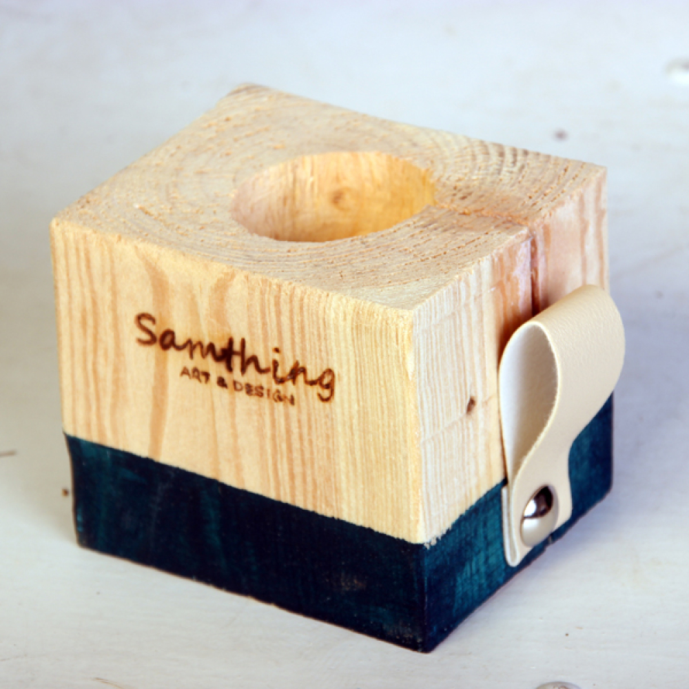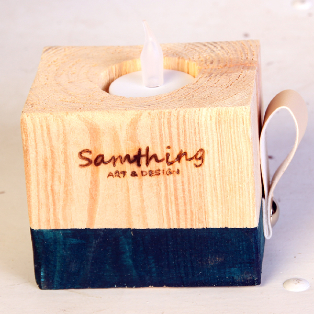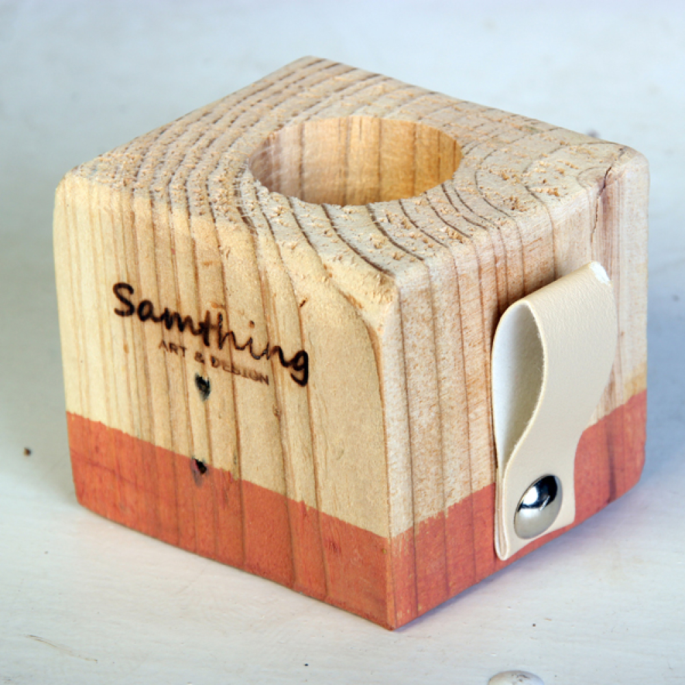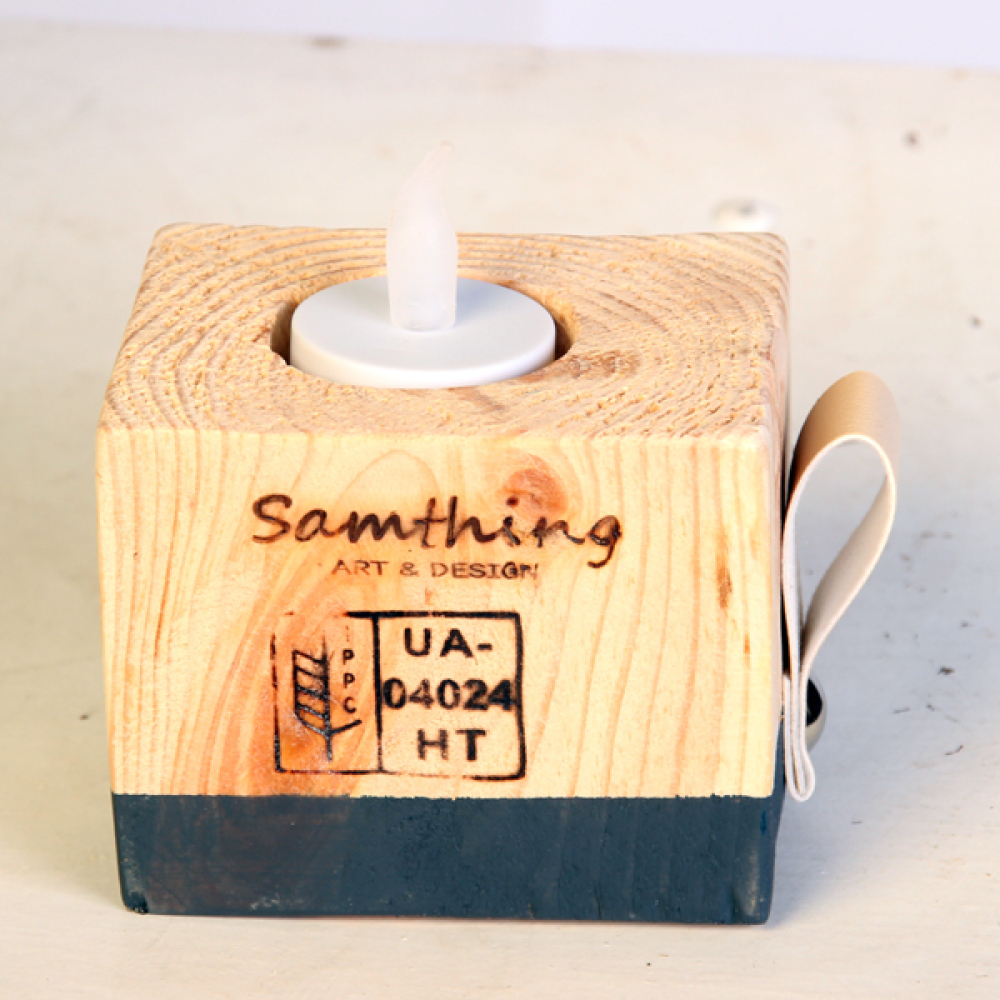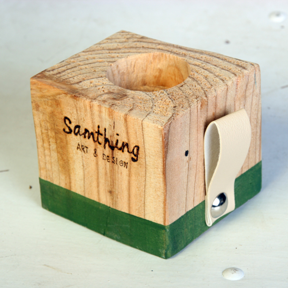 Houten waxinehouders gemaakt van gebruikte pallets.